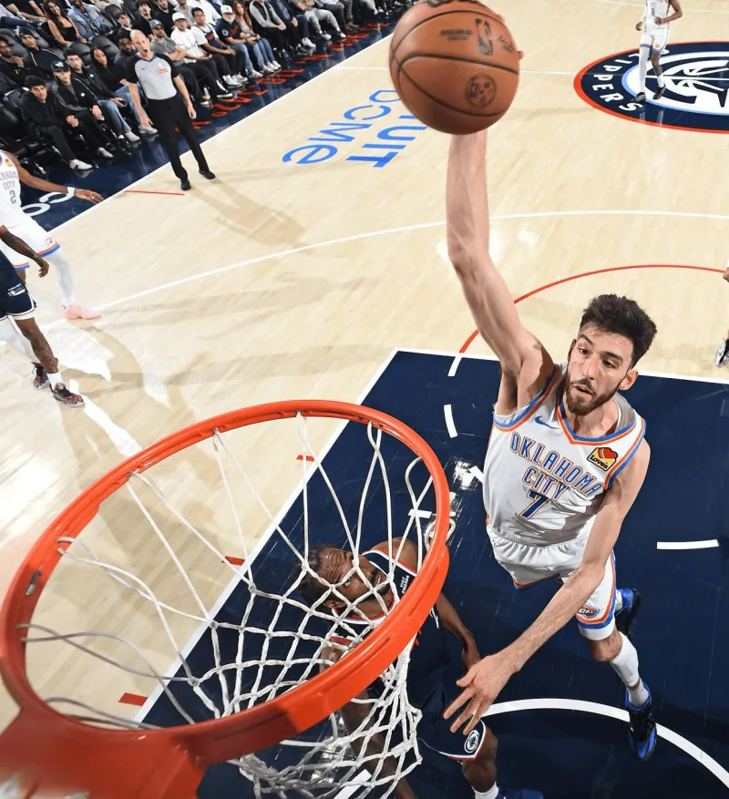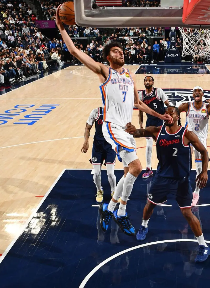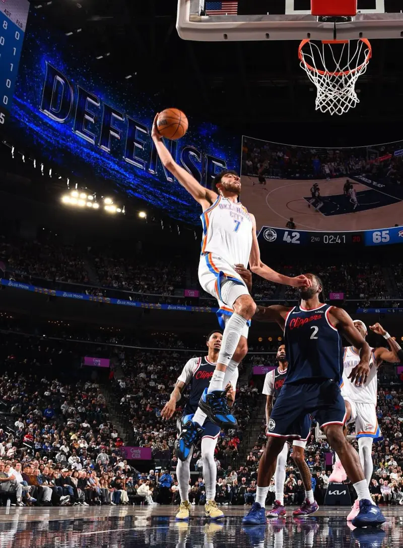 本场比赛,雷霆队球员切特-霍姆格伦出战31分钟,投篮13中10,三分球4中3,罚球10中7,得到30分14篮板5助攻2抢断4盖帽。