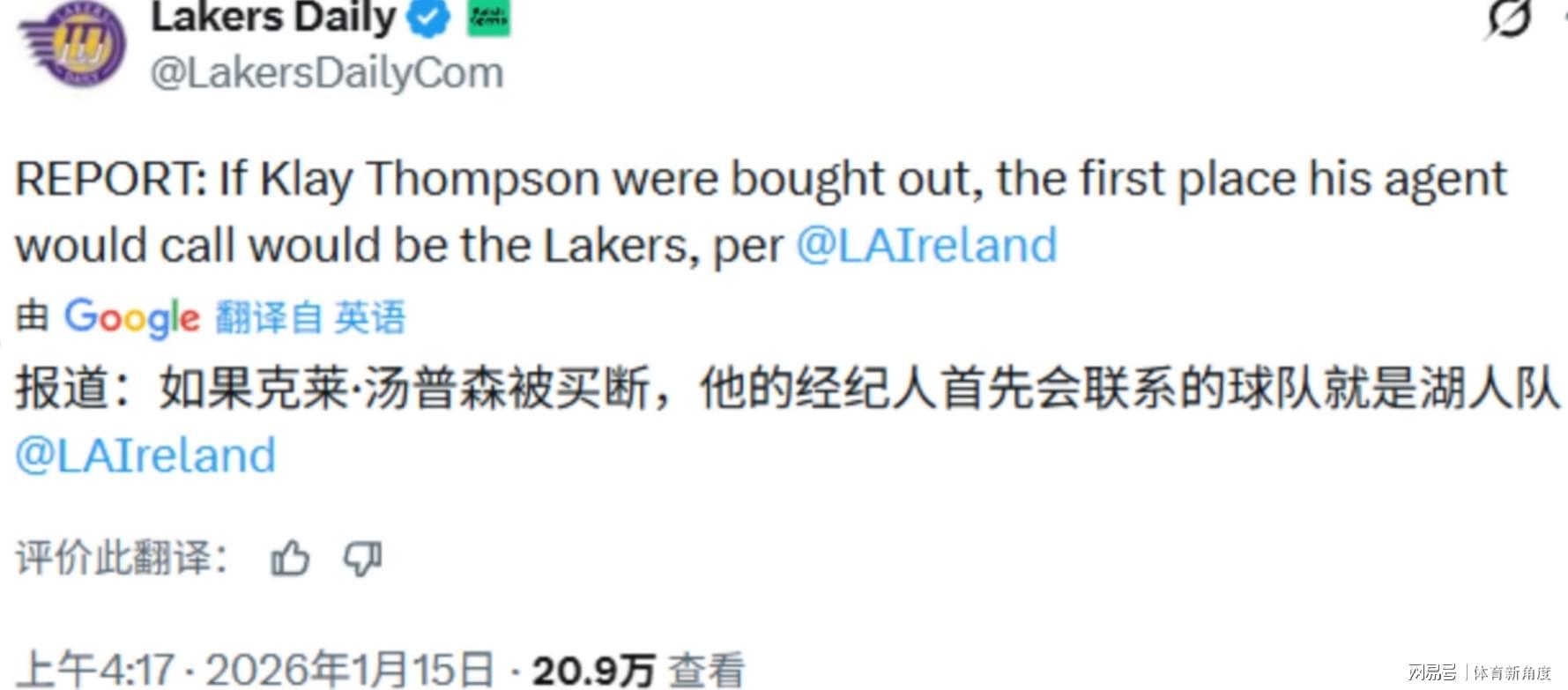 有意思的是,湖人主持人John Ireland透露了个小秘密,如果汤普森被独行侠买断,他的经纪人第一个联系的球队肯定就是湖人。湖人队就像个精明的淘宝达人,去年休赛期,在买断市场上一口气签下了18届状元艾顿,还有前DPOY斯玛特,这操作,简直让人佩服得五体投地。