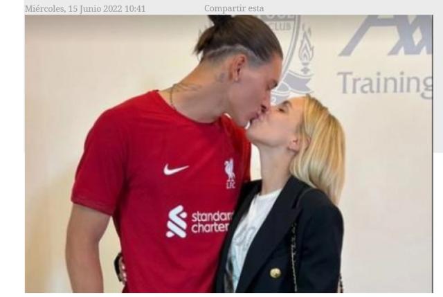 达尔文·努涅斯转会利物浦,成了英超红军队史最贵引援。乌拉圭前锋不是一个人到的利物浦,陪伴他的是未婚妻洛雷娜·马尼亚斯和两个孩子——一个是她为他生的,一个是她和前夫、前巴萨后卫亚历克斯•比达尔生的。