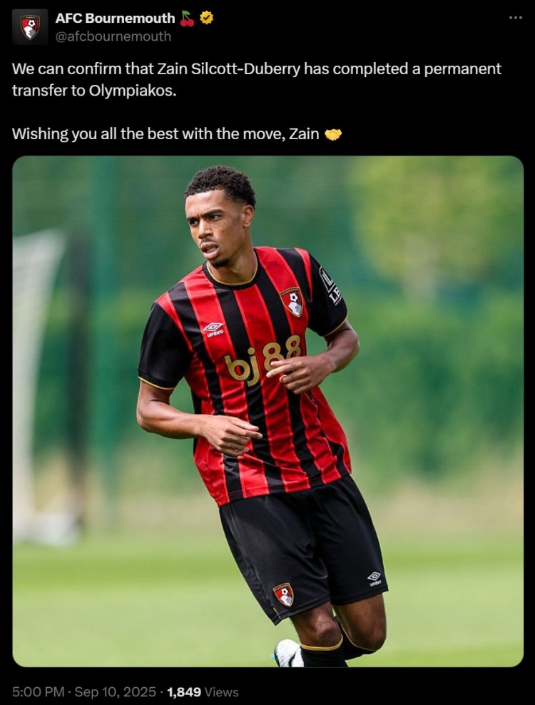 这名20岁的球员司职左边锋,于今年1月以自由身加盟伯恩茅斯U21。